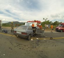 Na tarde de quarta-feira, 19, o 12º Batalhão Bombeiro Militar, da Cidade de Goiás, foi acionado para resgatar vítimas de um grave acidente de trânsito na GO-070. O acidente, envolvendo um veículo de passeio e um de grande portecarregado com aproximadamente 30 mil litros de gasolina, deixou duas vítimas, uma inconsciente e presa às ferragens e outra consciente. No local, os Bombeiros Militares realizaram os procedimentos de extricação veicular com o uso do desencarcerador. A ocorrência contou com o apoio do SAMU, que realizou o transporte das vítimas ao hospital. Confira fotos:
