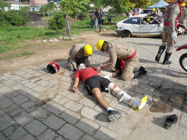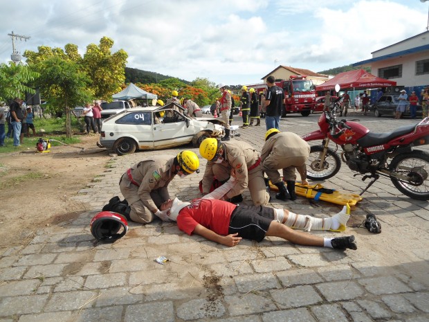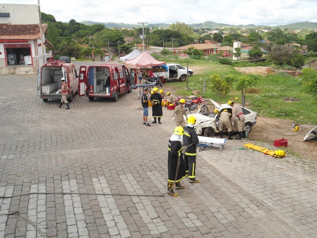 Na manhã de quarta-feira, dia 12, a 8ª Companhia Independente Bombeiro Militar, na Cidade de Goiás, realizou um simulado operacional que contou com a participação de seis viaturas e 24 Bombeiros Militares. O exercício simulou um acidente de trânsito com uma colisão frontal entre um carro e uma moto. O simulado teve como objetivo o aprimoramento técnico-profissional da tropa além de demonstrar à população vilaboense o trabalho realizado pelo CBMGO. Foram demonstradas técnicas de desencarceramento de vítima e atendimento pré-hospitalar. Confira as fotos: