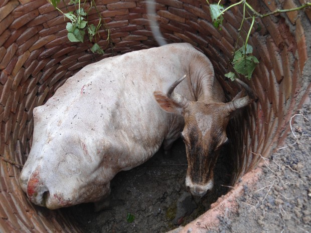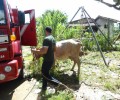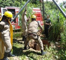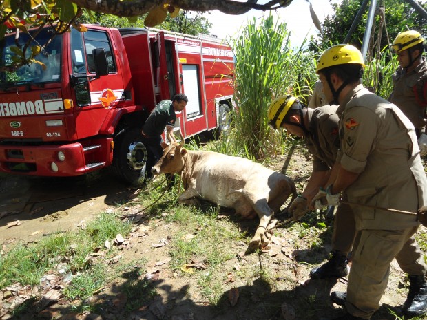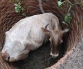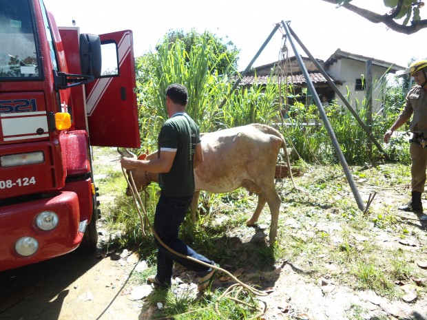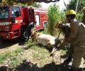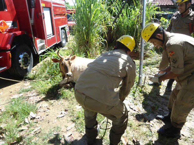 Bombeiros da Cidade de Goiás resgatam uma vaca em fossa