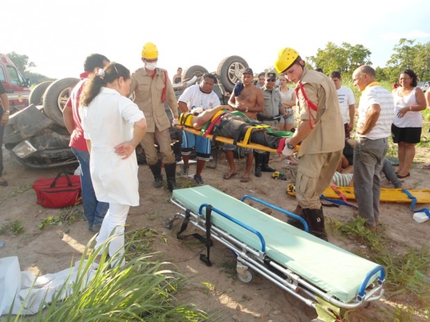 Bombeiros da Cidade de Goiás socorrem vítimas de capotamento na GO-164
