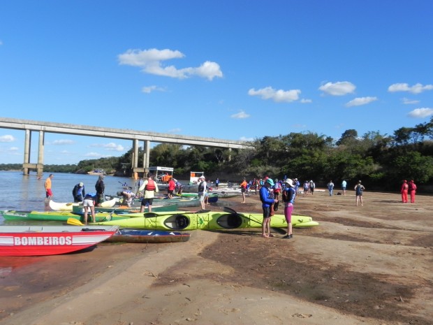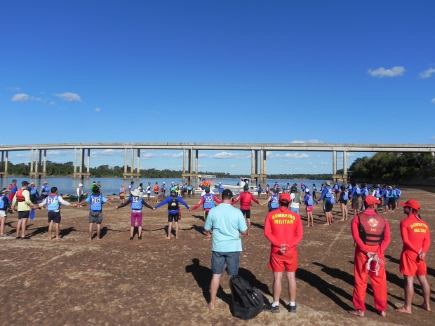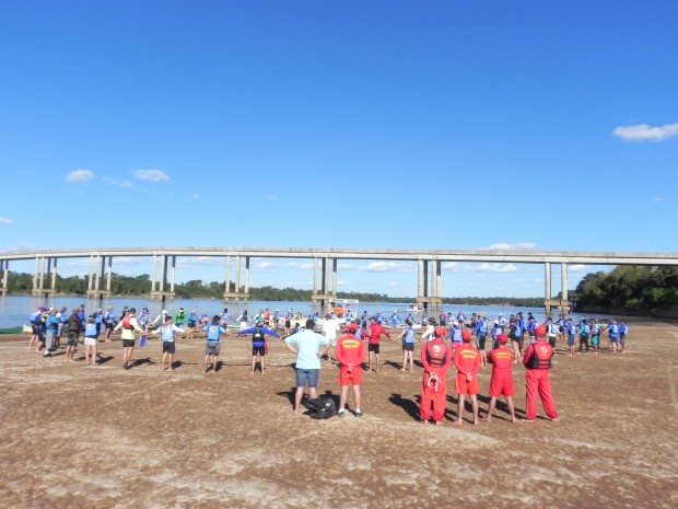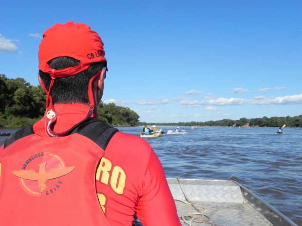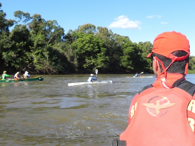 Bombeiros da 39ª Operação Férias – Turista Seguro acompanharam no sábado, dia 6, a prova de canoagem válida pelo CAMPEONATO BRASILEIRO DE MARATONA ECO-TURISMO E GOIANO DE MARATONA, com um percurso de 33 km no rio Araguaia, de Itacaiú a Aruanã-GO. O objetivo era dar segurança aos 70 competidores, entre atletas e aventureiros, que participaram da prova de resistência. A belíssima paisagem natural e o contato direto com a natureza enriqueceram o evento e deram um “ar” de passeio à competição. A Operação Férias 2013 concluiu sua primeira semana de trabalho com mais de 6,5 mil ações preventivas entre orientações, palestras e outros.