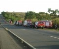 No local as guarnições verificaram que uma das vítimas estava presa às ferragens e foi desencarcerada. Após a estabilização da vítima, a mesma foi transportada ao Hospital de Base do DF pelo helicóptero do Corpo de Bombeiros de Brasília