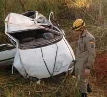 Bombeiros de Anápolis atuam em grave acidente de capotamento na BR-414