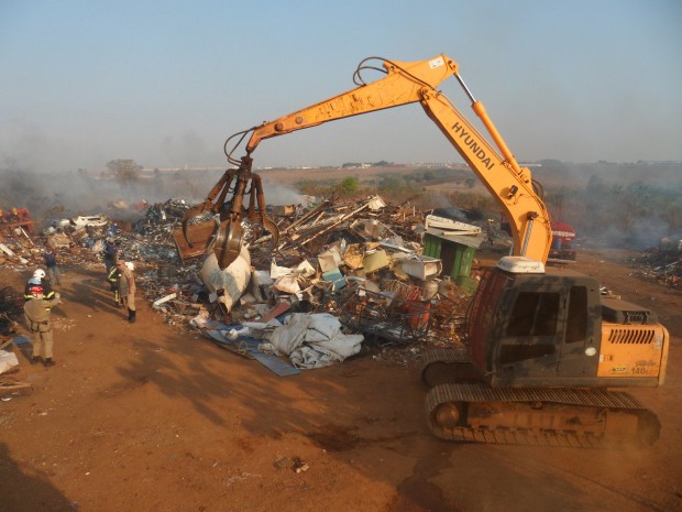 Bombeiros de Anápolis atuam em incêndio em empresa de reciclagem