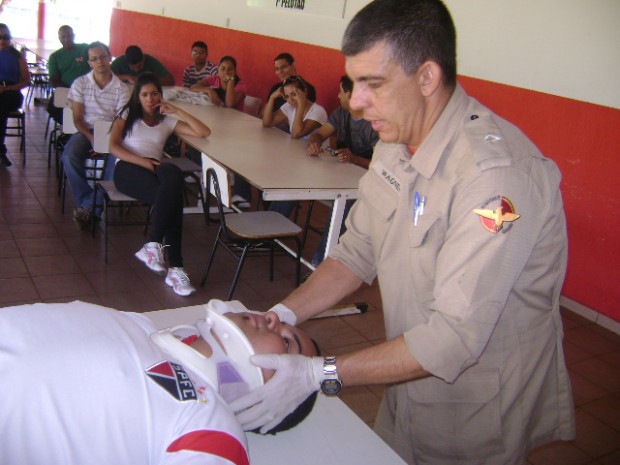 Nos dias 17, 18 e 19 de outubro, o 3º BBM, em Anápolis, realizou treinamento com cerca de 25 funcionários da empresa Rio Vermelho. Foram dadas aulas teóricas e práticas sobre primeiros socorros e prevenção de acidentes, combate a incêndio, uso de EPI’s, capa de aproximação, EPR’s e incidentes com GLP. As aulas foram ministradas pelo Subtenente Wagner.