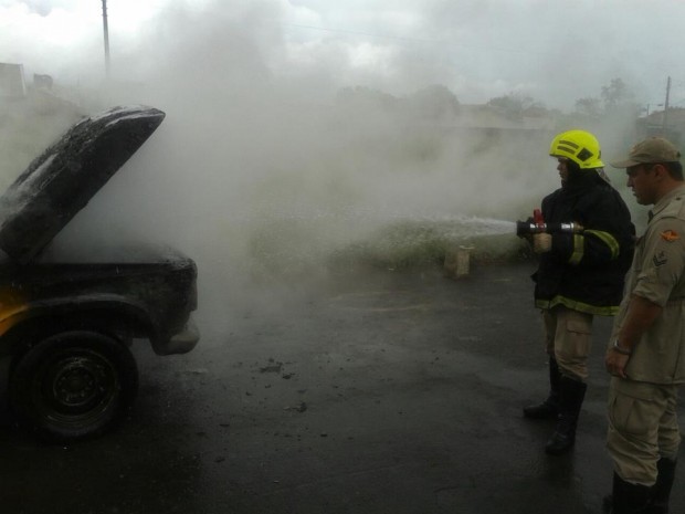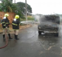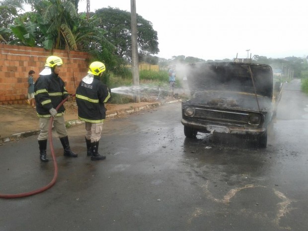 Bombeiros de Aparecida de Goiânia combatem incêndio em veículo no Bairro Vera Cruz