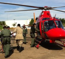 Na sexta-feira, dia 15, o 9º Batalhão Bombeiro Militar, em Caldas Novas, em trabalho conjunto com o SAMU e Equipe do Helicóptero Bombeiro 1, realizou atendimento de emergência de uma parturiente que estava em trabalho de parto, com 25 semanas de gestação, sendo gravidez de gêmeos. A parturiente de 23 anos foi transportada pela viatura do SAMU até o pátio do centro de eventos de Caldas Novas. No local, bombeiros isolaram a área para o pouso do Bombeiro 01, que transportou a grávida para o Hospital Materno Infantil, em Goiânia. Confira fotos: