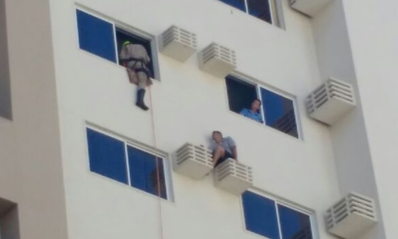 Bombeiros Militares de Caldas Novas foram acionados no sábado para socorrer um turista que estava no suporte de ar condicionado no 9º andar de um prédio. A vítima relatou que estava tentando pegar o celular e caiu. “O celular caiu, fui tentar pegar e virei. Ainda bem que o celular ficou na minha mão. Gritei e liguei para o Corpo de Bombeiros”, disse o turista. Utilizando técnicas de salvamento em altura, a equipe conseguiu chegar até o rapaz e foi realizado rapel para o socorro. Chegando ao chão, ele recebeu os primeiros atendimentos médicos, foi encaminhado a um hospital da cidade e liberado.
