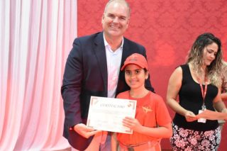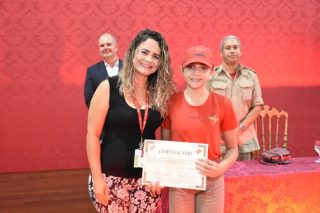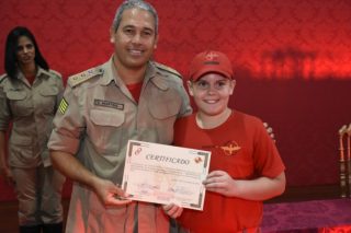 O 10º Batalhão Bombeiro Militar promoveu na noite de quarta-feira, 28, em Catalão, no auditório do Itego Labibe Faiad a formatura da 5ª turma do Programa Educacional Bombeiro Mirim – Proebom . A cerimônia foi presidida pelo Tenente Coronel Warley Martins de Sousa e contou com a participação de autoridades civis, militares e familiares dos formandos. O Proebom é um programa social do CBMGO que visa fortalecer nas crianças os princípios morais e éticos, além de proporcionar a elas noções de conhecimentos básicos nas áreas de atuação da Corporação, como primeiros socorros, combate a incêndio, nós e amarrações. Participaram do projeto 40 crianças entre 10 e 12 anos. O projeto teve o patrocínio da CMOC Internacional.