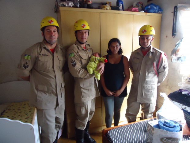 Na noite de domingo, dia 13, o 10º Batalhão Bombeiro Militar, em Catalão, foi acionado para socorrer uma gestante que sentia fortes contrações e estava entrando em trabalho de parto. No local, foi verificado que a criança já estava nascendo. Com a utilização do kit parto da viatura UR-101 os militares 1° Sargento Jean e 3°Sargentos Leonardo e Wemerson realizaram os procedimentos para o parto de emergência. Após realização do parto, limpeza e contenção do recém-nascido, a criança juntamente com a mãe foram acomodadas na viatura e em seguida transportadas para o Hospital Materno Infantil da Cidade. O bebê, que ainda não tem nome, nasceu saudável, pesando 2,2 kg. A equipe que realizou o parte visitou mãe e bebê no hospital. Depois do susto, a mãe dise só quer curtir o momento. Ela agradeceu os bombeiros. “Me senti muito feliz com a ajuda deles”, disse. O encontro foi tema de reportagem da TV Anhanguera (clique aqui para assistir) Confira fotos:
