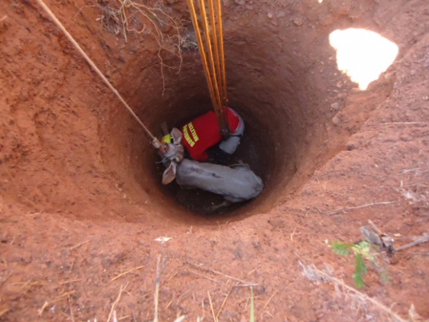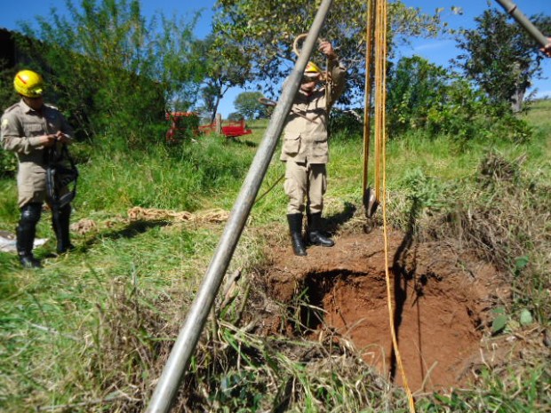 Bombeiros de Catalão resgatam bezerro que caiu em cisterna de sete metros de profundidade