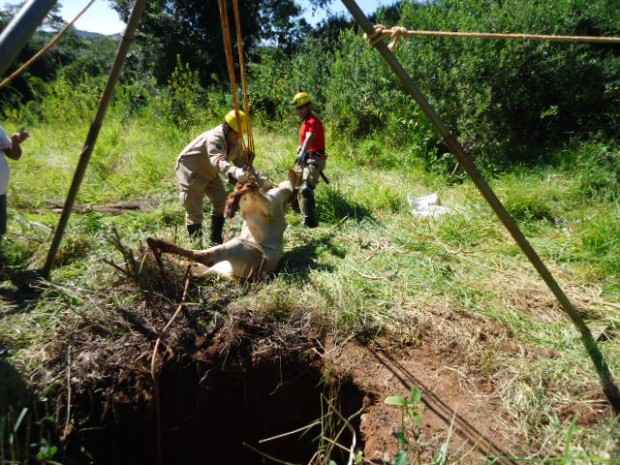 Na semana passada, o 10° BBM, em Catalão, foi acionado para retirar um bezerro de uma cisterna abandonada e seca de aproximadamente 7 metros de profundidade. Apesar da profundidade, o animal estava saudável e agressivo. Utilizando equipamentos de salvamento, cabos diversos, Epi’s e técnicas de rapel, os Bombeiros realizaram a amarração no animal e com o estabelecimento montado com roldanas, retiraram o bezerro, que foi entregue logo em seguida ao seu proprietário. Ele agradeceu o empenho dos militares. A guarnição que atendeu a ocorrência foi formada pelo 3º Sargento Elias, e Soldados Odilon, Misael e Nicolau.