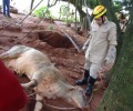 Bombeiros Militares de Catalão resgatam vaca que caiu em cisterna