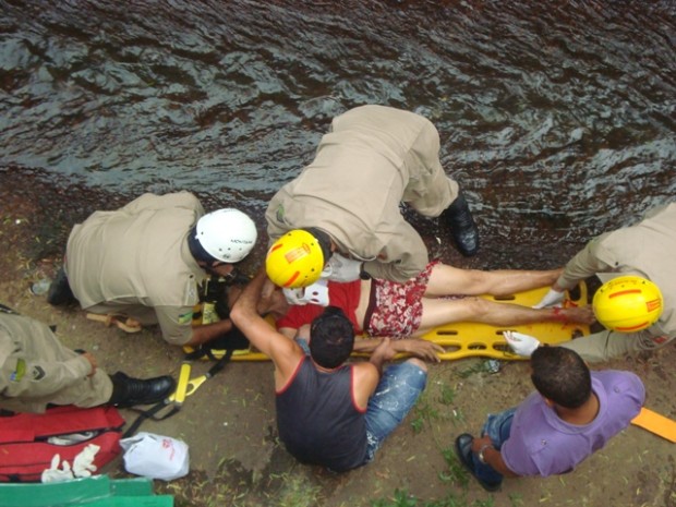 Bombeiros de Catalão socorrem vítima de queda no Ribeirão Pirapitinga