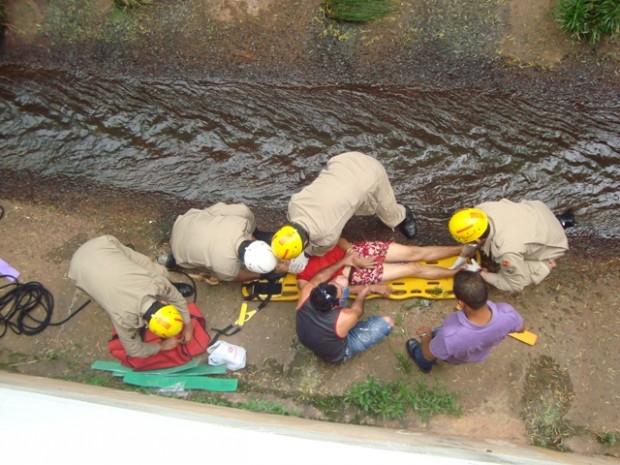 No final da tarde de segunda-feira, dia 7, Bombeiros do 10º BBM, em Catalão, foram mobilizados para socorrer uma mulher que, segundo testemunhas, após subir em uma árvore, pulou dentro do Ribeirão Pirapitinga, que corta a cidade. Ela sofreu uma queda de aproximadamente cinco metros de altura.