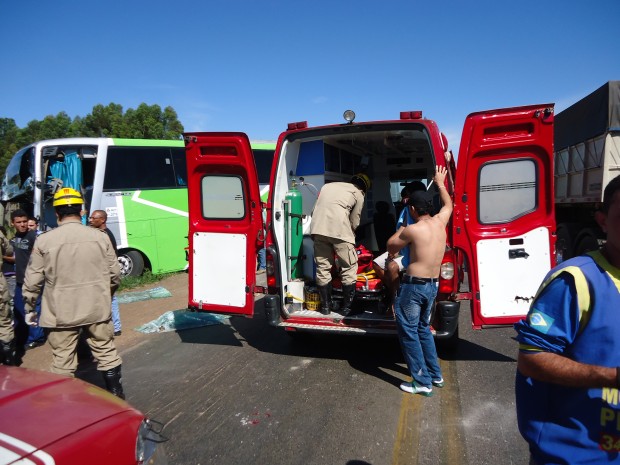 Bombeiros de Catalão socorrem vítimas de colisão entre ônibus e caminhão na BR-050