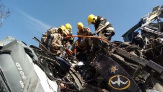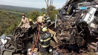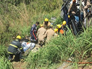 Bombeiros Militares de Cristalina foram acionados na manhã de sábado para resgate de vítimas de um acidente entre um caminhão-tanque carregado e dois ônibus na BR-40. O motorista de um dos ônibus que levava a equipe da cantora Yasmin Santos morreu no local. Cerca de oito vítimas foram levadas ao hospital com escoriações e algumas fraturas, mas nenhuma corre risco de morte. A UR-177, composta pelo Sargento Mauro e Cabos Thanyra e Luiz Antônio, e a URS-10, do Sargento Hamilton e Cabo Jorge foram as primeiras a chegar no local e solicitaram de imediato o apoio do ABT-48, com os Cabos Bertoncello e Henrique, e ABS-21, Com o Cabo Pascoal, e a ASA-70, com o Sargento Da Silva e Cabo Geydson.