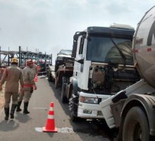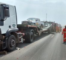 Nesta sexta-feira, 17, os Bombeiros Militares da cidade de Cristalina atenderam um engavetamento no quilômetro 118 da BR-040. O acidente, envolvendo três carretas, deixou uma vítima, que foi encaminhada ao Hospital Municipal de Cristalina para avaliação médica.