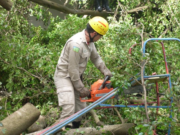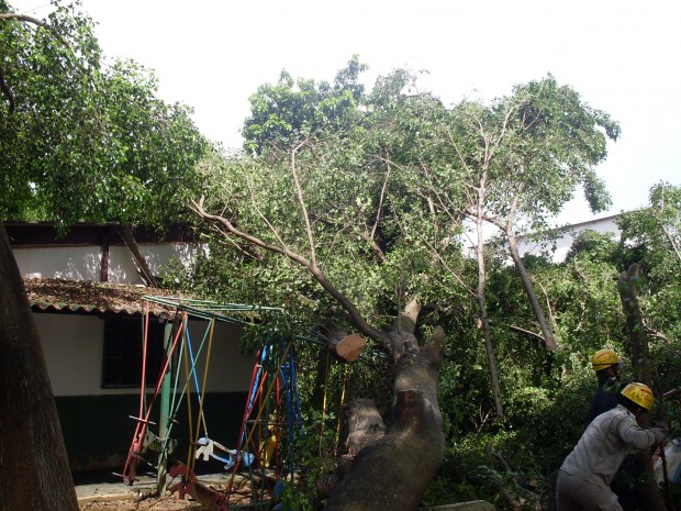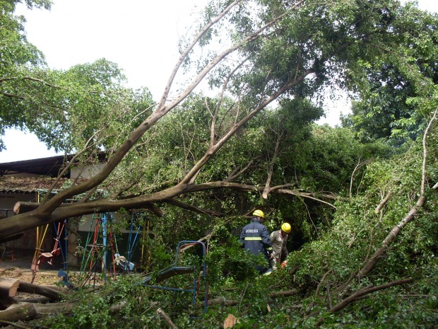 Na tarde da última segunda-feira, dia 21, a guarnição do 2 Pelotão Bombeiro Militar, em Cristalina, composta pelos Cabos Demétrio e Elson e os Soldados Nikholas, Luiz Antônio e Coleto, foi acionada para atender uma ocorrência de queda de uma árvore em uma creche. No local, a equipe constatou que os galhos caíram sobre uma sala de aula e uma área de lazer, não houve vítimas, apenas em danos materiais. A guarnição, após avaliar os riscos, efetuou o corte e a retirada da árvore para evitar o desabamento do teto. Confira fotos: