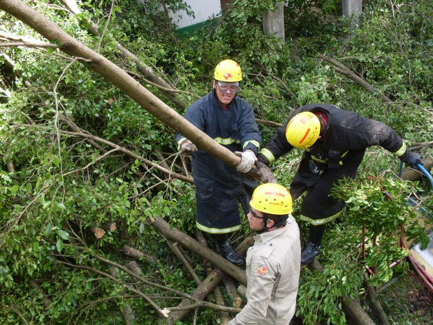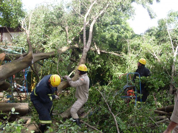 Bombeiros de Cristalina atuam em ocorrência de queda de árvore