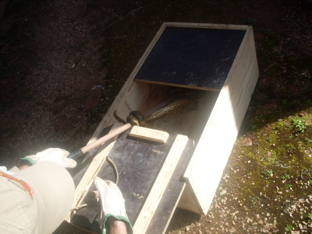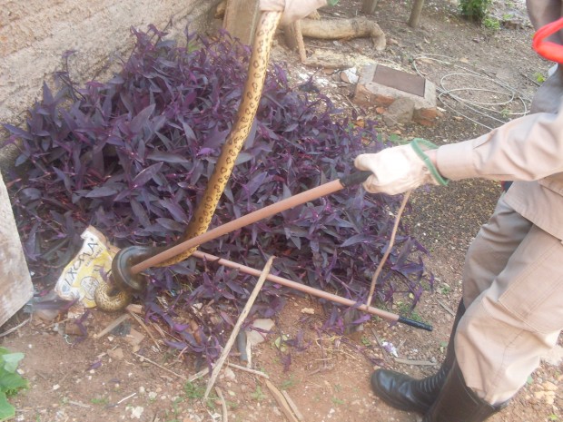 Bombeiros de Cristalina resgatam filhote de sucuri em quintal de hotel