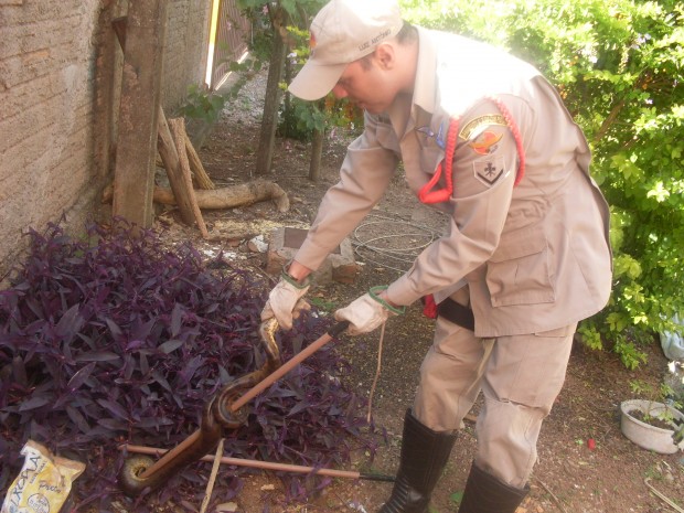Na tarde de terça-feira, dia 30, o 2º PBM, de Cristalina, foi acionado para resgatar um filhote de cobra encontrada no quintal de um hotel. Ao chegar no local, a equipe constatou que se tratava de uma sucuri com aproximadamente 1,50 m. Após a captura do animal que não apresentava ferimentos, ele foi solto na reserva Serra dos Topázios onde poderá viver em seu habitat natural.