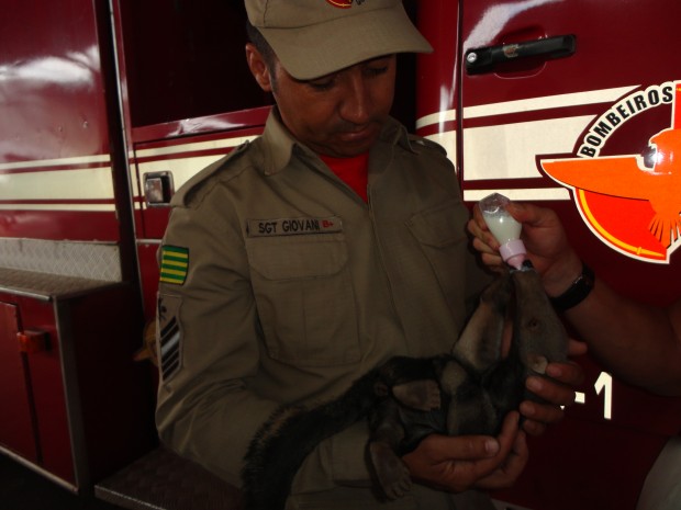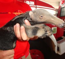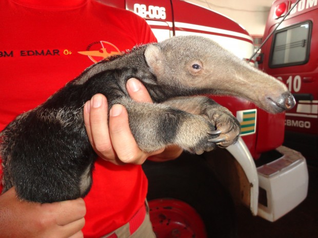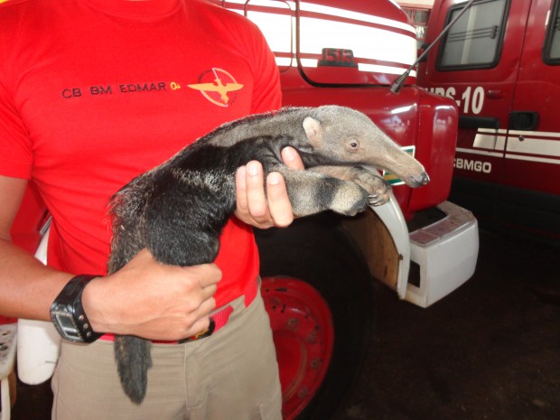 Bombeiros de Cristalina resgatam filhote de tamanduá