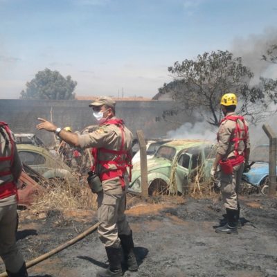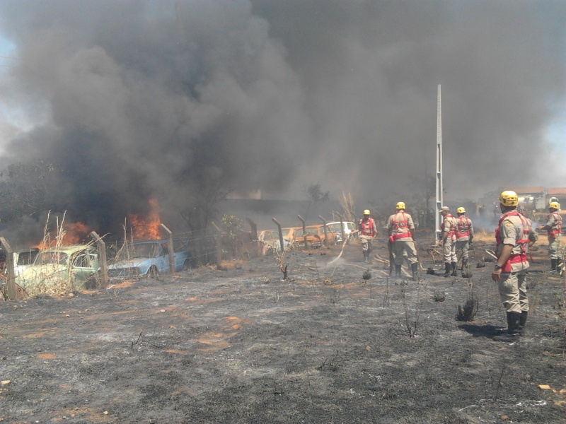 Na sexta-feira, dia 7, os militares e as guarnições da 7ª CIBM, em Formosa, foram acionados para combater um grande incêndio em vegetação no pátio de veículos apreendidos pela Polícia Civil no CIOPS.