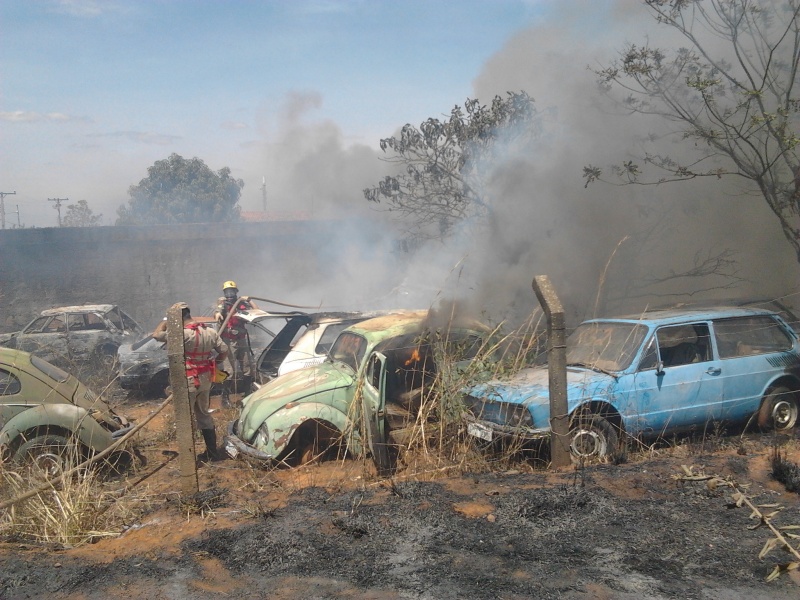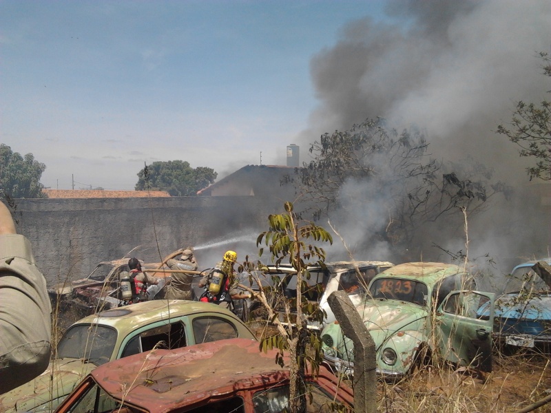 Bombeiros de Formosa combatem incêndio em pátio de veículos apreendidos