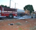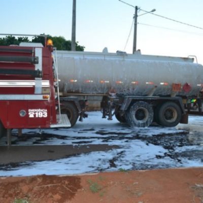 Bombeiros de Goianésia combatem incêndio em carreta carregada de etanol