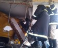 Bombeiros de Goiânia socorrem motoristas de carreta que colidiu e invadiu loja