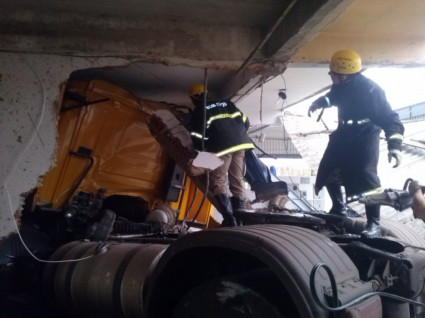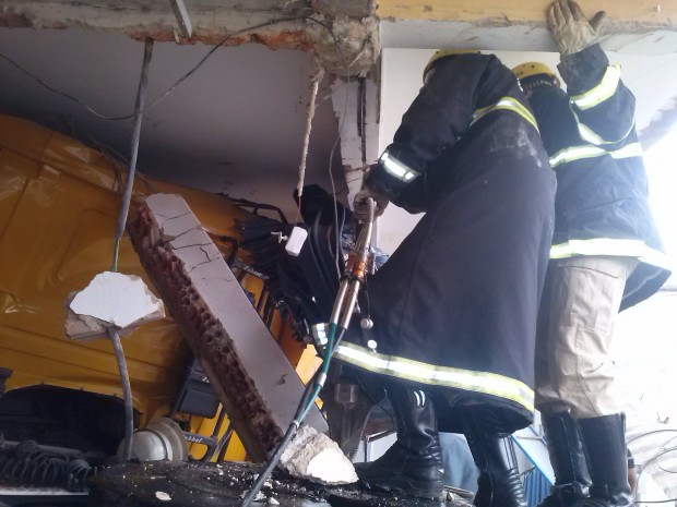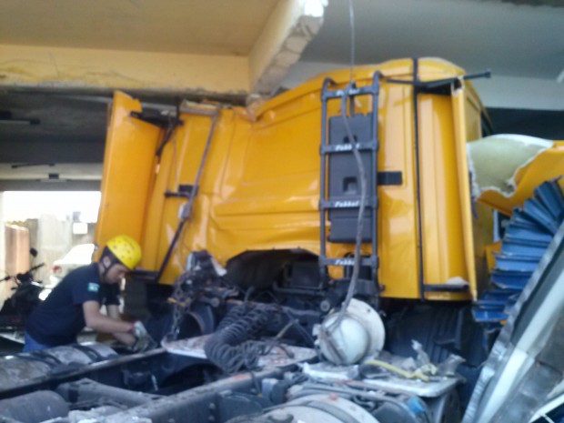 Bombeiros do 8º Batalhão Bombeiro Militar, em Goiânia, foram acionados por volta de 1 hora da manhã de quinta-feira, 5, para socorrer o motorista de uma carreta que colidiu e invadiu um estabelecimento comercial na Avenida 3ª Radial, no Setor Pedro Ludovico. O choque foi tão violento que destruiu parcialmente a entrada da loja, quebrou uma das colunas de sustentação e danificou uma motocicleta que se encontrava na garagem.