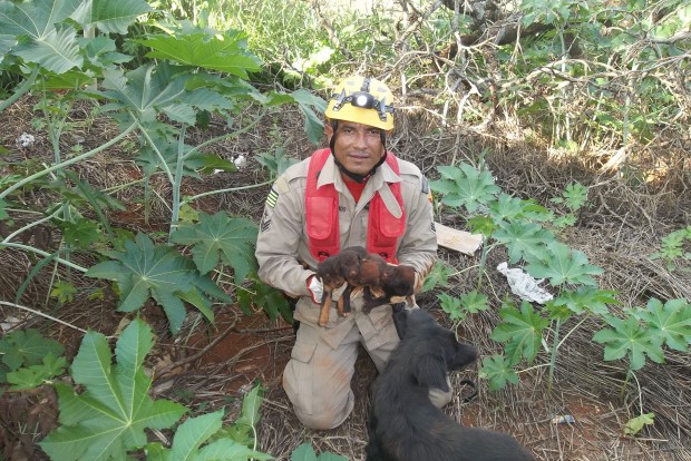 Nesta quarta-feira, dia 13, Bombeiros do 2º Batalhão Bombeiro Militar, em Goiânia, foram acionados para resgatar 6 filhotes de uma cadela que estavam em um buraco com 1,20 profundidade, em um lote baldio, criado pela própria mãe dos filhotes para escondê-los. Segundo informações dos vizinhos, a cachorra não tinha dono e morava na rua, após a retirada dos filhotes do buraco, uma moradora do setor se comprometeu a cuidar dos animais. Confira fotos: