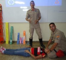 A palestra sobre primeiros socorros foi destinada aos alunos do curso de Educação Física e Fisioterapia da FAFICH / FESG de Goiatuba, fazendo parte da disciplina Traumatismo no Esporte. Ministrada pelo Sargento Marcionil e Soldados Prado, Sales e Mendonça, foi realizada de forma teórica e prática e abordou temas como avaliação da vítima, atendimento a traumas, parada respiratória e cardiorrespiratória, hemorragias, fraturas, obstrução respiratória, síncopes e convulsões. Confira fotos: