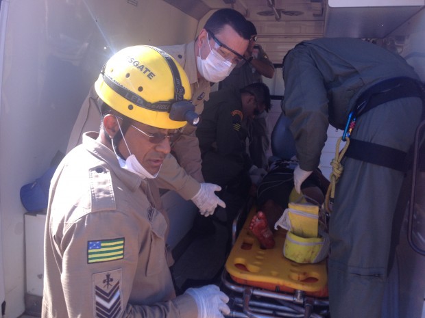 No local, estavam duas viaturas da 9ª Companhia Independente Bombeiro Militar – Inhumas, que já haviam realizado o primeiro atendimento as duas vítimas do acidente. A Equipe médica após triagem e procedimentos de analgesia escolheu a vítima mais grave, que apresentava fraturas e sangramento volumoso, para que fosse transportada para o HUGO. O tempo resposta para o atendimento desta ocorrência foi de apenas 30 minutos, desde o acionamento da equipe de resgate aeromédico até a entrada da vítima no hospital. Confira fotos: