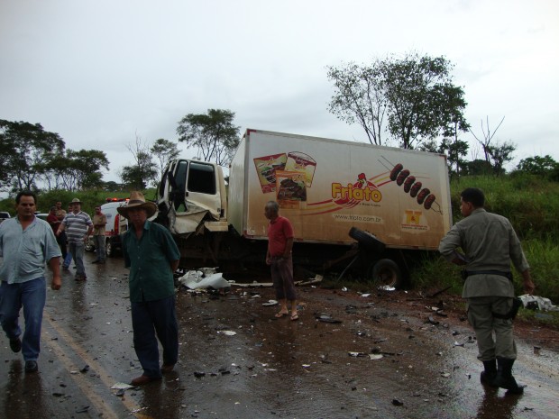 Bombeiros de Inhumas resgatam vítimas de acidente entre carro e caminhão na GO-426