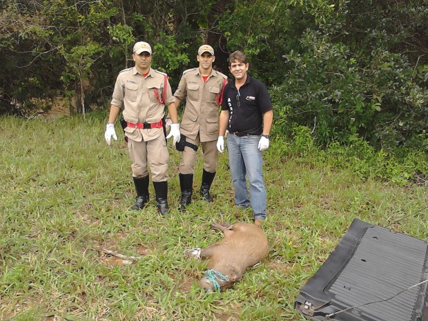 No último dia 11, a guarnição de busca e salvamento do 6º Pelotão Bombeiro Militar, em Itaberaí, composta pelos Soldados Camilo, Fonseca e Leonam, foi acionada para a capturar uma capivara que se encontrava em uma empresa do município. Chegando ao local, a guarnição observou que se tratava de um animal de grande porte, com aproximadamente 60 kg. Foram usadas técnicas de captura e a ajuda de um veterinário que utilizou sedativos a fim de preservar a integridade física do animal. Confira fotos: