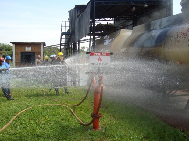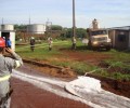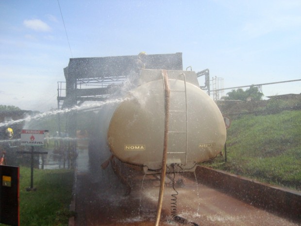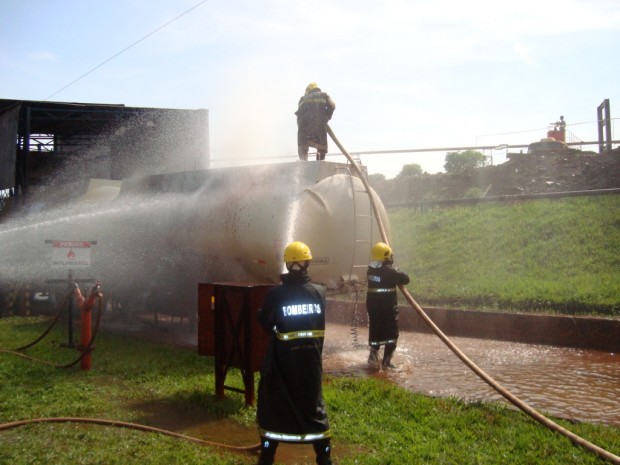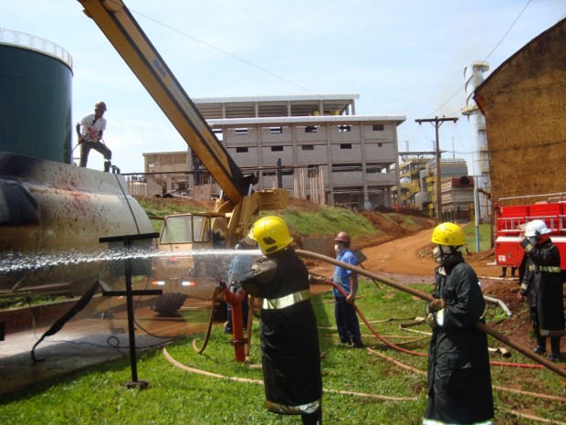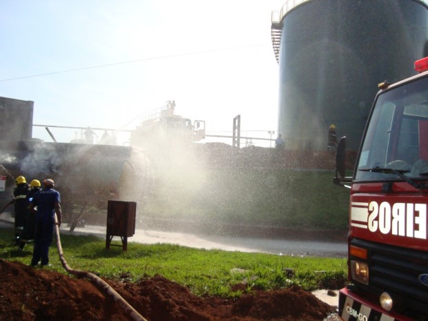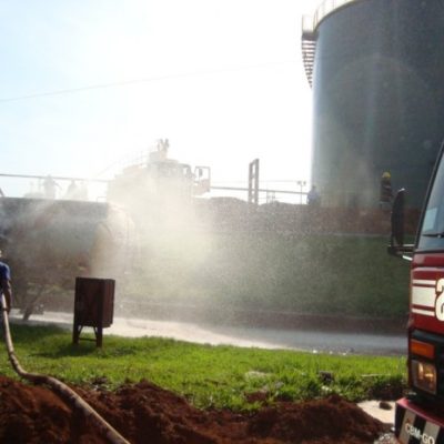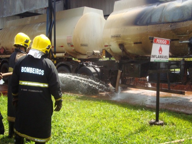 Na última quarta-feira, dia 21, o 6° Batalhão Bombeiro Militar, em Itumbiara, atendeu uma ocorrência de explosão e incêndio em um tanque carregado com álcool anídrico nas instalações da usina Alvorada, em Araporã – MG. No local, a guarnição de Bombeiros de Goiás atuou em conjunto com os brigadistas da empresa. Foram utilizados no combate a rede de hidrantes e caminhões com água e empregadas as técnicas de resfriamento e a mistificação (aumentando a concentração da água com álcool, diminuída assim o ponto de fulgor do combustível “álcool anídrico” do combustível. No momento da explosão, um funcionário foi atingido e socorrido pela empresa e encaminhado para Hospital na cidade de Itumbiara com queimaduras e fratura de membro inferior. Confira fotos: