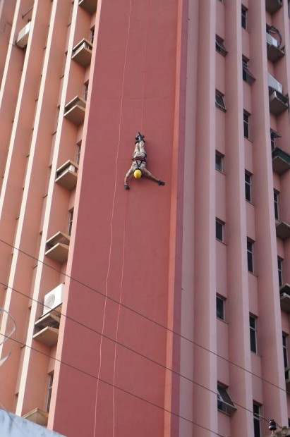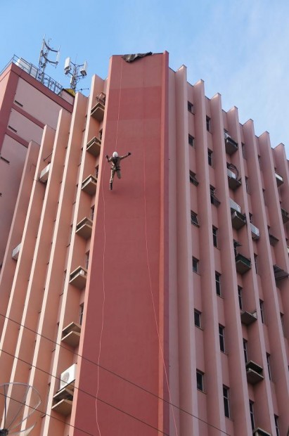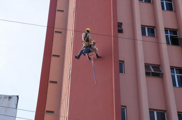 Como encerramento do simulado operacional, foi feito demonstrações de técnicas de salvamento em altura, abrangendo resgate em cabo paralelo, descidas em rapel simples, normal e em método aranha.