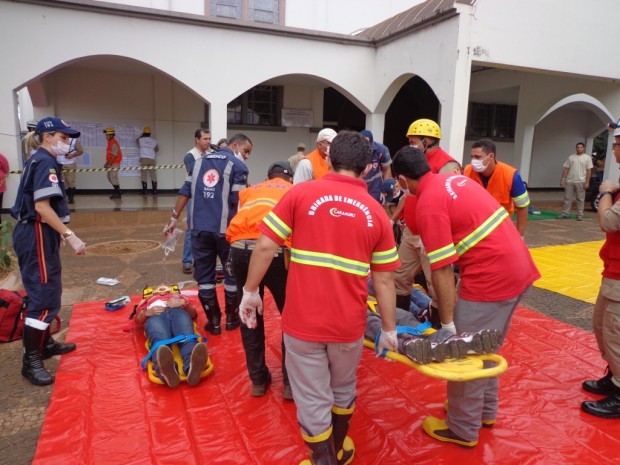 O exercício simulado consistia na colisão de um ônibus coletivo com um veículo de pequeno porte, que perde o controle e colide com um poste. Várias vitimas ficam feridas no interior do coletivo. Com o impacto ele pega fogo levando seus dois ocupantes a óbito. A descarga elétrica decorrente do choque do coletivo com o poste ocasiona principio de incêndio no colégio Instituto Francisco de Assis.