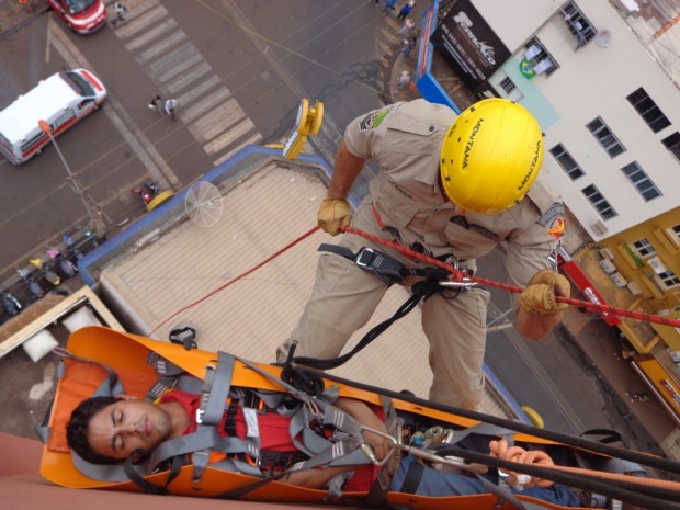 Devido a queda de energia, os elevadores de um edifício deixaram de funcionar, sendo necessário a retirada de uma vitima com mobilidade reduzida do 10º andar, sendo para isso utilizados técnicas de salvamento em altura. A realização do PAM foi considerada um sucesso, com ótimo entrosamento entre os mais diversos órgãos envolvidos. Confira fotos: