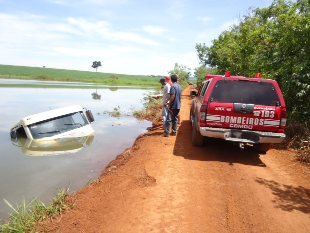Bombeiros de Itumbiara retiram caminhão submerso em represa