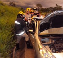 Bombeiros Militares de Jaraguá atuam em acidente envolvendo dois veículos na BR 153