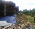 Bombeiros de Jaraguá atuam em ocorrência de capotamento de caminhão na GO-080