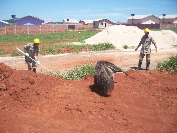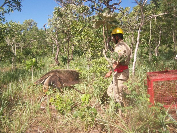 Bombeiros da 17ª Companhia Independente Bombeiro Militar, em Jaraguá, atenderam na última quarta-feira, dia 19, uma ocorrência de captura de animal silvestre, no quintal de uma residência no Bairro Cesário da Mata em Jaraguá. Tratava-se de um tamanduá bandeira (Myrmecophaga tridactyla) que foi capturado sem ferimentos e solto em seu habitat natural, no Parque Estadual da Serra de Jaraguá.Confira fotos:
