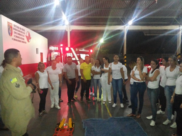 Na noite de segunda-feira, 25, alunos da Escola Técnica de Enfermagem Ana Neri participaram de uma série de instruções práticas ministradas pelos Bombeiros Militares da 14ª Companhia Independente Bombeiro Militar de Jaraguá. A atividade contou com oficinas de temas abordados na disciplina de Primeiros Socorros do Curso Técnico de Enfermagem como avaliação primária e secundária, uso do desfibrilador, controle de vias aéreas, RCP, retirada de capacete, elevação em monobloco e  retirada de vítima de veículo utilizando o colete de imobilização dorsal (KED). Ao final, os militares receberam o agradecimento da professora do curso, Edna Ribeiro, pelo trabalho realizado.