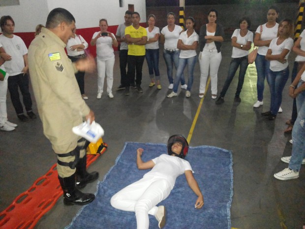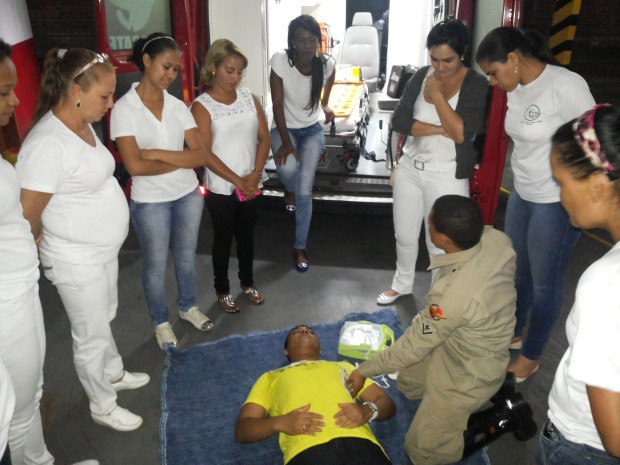 Bombeiros de Jaraguá ministram instrução de primeiros socorros para alunos de escola de enfermagem