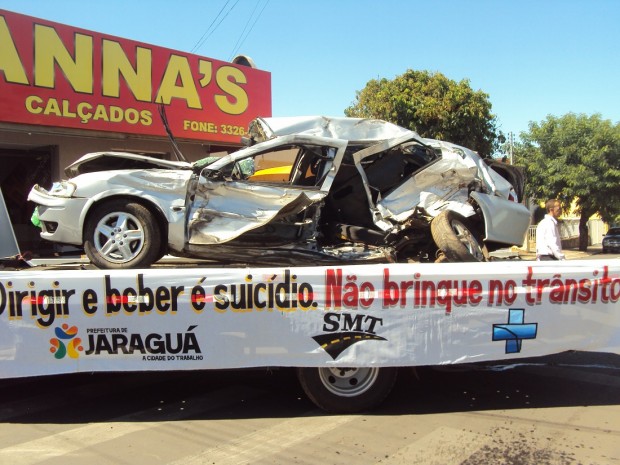 As ações foram realizadas, em um cruzamento no centro da cidade, em frente ao Palácio da Educação de Jaraguá e tem como objetivo educar e orientar a todos os cidadãos e principalmente as crianças e jovens, os quais serão os condutores no futuro, despertando assim o desejo de prevenção e segurança no trânsito, diminuído as estatísticas de acidentes em nosso Estado. Confira fotos: