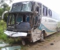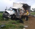 A 14ª Companhia Independente Bombeiro Militar, em Jaraguá, foi acionada na tarde de quarta-feira, dia 31, para socorrer vítimas de um grave acidente de trânsito envolvendo um ônibus e um furgão na BR-153. No local, os Bombeiros depararam com o motorista do furgão ainda no interior do veículo com ferimentos graves e inconsciente. Foi realizada a retirada dele que foi encaminhado ao Hospital Municipal de Jaraguá. No ônibus, segundo informações de testemunhas, havia cerca de 35 passageiros. O motorista e os passageiros das poltronas da frente apresentavam apenas ferimentos nos braços e face por estilhaços de vidros fragmentados, por isso recusaram transporte para o hospital. Confira fotos da ocorrência: