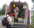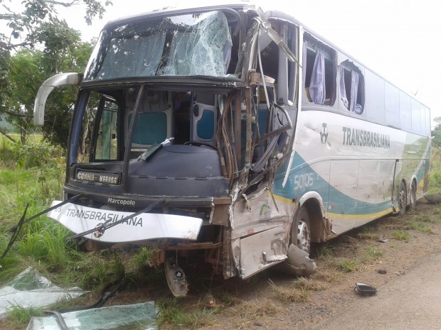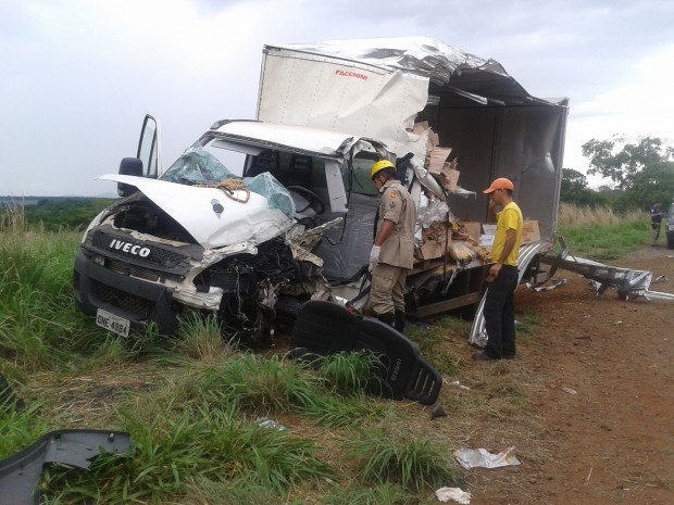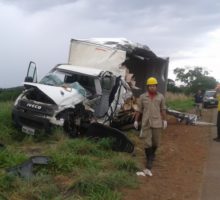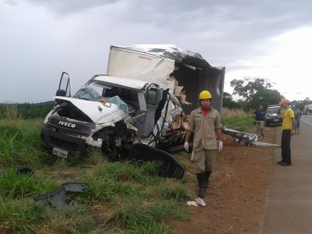 Bombeiros de Jaraguá socorrem vítima de acidente entre ônibus e furgão na BR-153